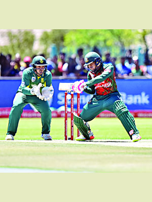 মুশফিক ভড়কান না। নব্বইয়ের ঘরেও তাই তাহিরকে আবার রিভার্স সুইপ মারেন। তাঁকে ৯৮-তে রেখে সাব্বির আউট হয়ে গেলেও কাগিসো রাবাদার ঠিক পরের বলে দুই রান নিয়ে পৌঁছে যান অবিস্মরণীয় মাইলফলকে। শেষ পর্যন্ত ১১৬ বল খেলে ১১টি চার ও দুই ছক্কায় ১১০ রানে অপরাজিত থাকেন মুশফিক। তাতেই লড়াই করার মতো একটা পুঁজি তো অন্তত পায় বাংলাদেশ।