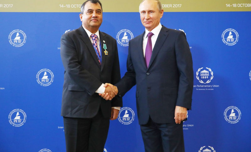 আজ জাতীয় সংসদের গণসংযোগ শাখার পাঠানো প্রেস বিজ্ঞপ্তিতে বলা হয়েছে, গত ৯ অক্টোবর মস্কোর ক্রেমলিনে রাশিয়ান ফেডারেশনের প্রেসিডেন্ট পুতিন স্বাড়্গরিত রাষ্ট্রীয় পদক সংক্রান্ত ৪৭৫ নং প্রেসিডেন্টের ডিক্রিতে বলা হয়, আন্ত:সংসদীয় সম্পর্ক উন্নয়নে বিশাল ভূমিকা রাখার জন্য আইপিইউ’র সঙ্গে রাশিয়ান ফেডারেশনের ফেডারেল এসেম্বলির পারস্পারিক সমঝোতা ও সহযোগিতা সূদৃঢ় করতে ভূমিকা রাখার জন্য তাকে এ পদক প্রদান করা হলো। ইতিপূর্বে এই পদক প্রাপ্ত বিশিষ্ট ব্যক্তিদের মধ্যে রয়েছেন- সিঙ্গাপুরের প্রধানমন্ত্রী লি কুয়া ইউ, কেন্টাবুরির আর্চ বিশপ রোয়ান উইলিয়ামস, বর্তমান মার্কিন পররাষ্ট্রমন্ত্রী রেক্স টিলারসন এবং জাতিসংঘের প্রাক্তন মহাসচিব বান কি মুনসহ অনেকেই।
