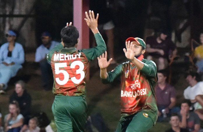 টসে জিতে ব্যাটিংয়ে নামা দক্ষিণ আফ্রিকার বিপক্ষে দুই প্রান্ত থেকেই স্পিন আক্রমণ দিয়ে ইনিংস শুরু করেন সাকিব। ঘূর্ণিবলে তার সঙ্গী ছিলেন মেহেদী হাসান মিরাজ। সাকিবের সিদ্ধান্তের যথার্থতা টের পাওয়া যায় প্রোটিয়াদের ইনিংসের শুরুতেই। দলীয় ১৮ রানেই তরুণ স্পিনিং অল-রাউন্ডার মিরাজের বলে প্যাভিলিয়নের পথ ধরেন হাশিম আমলা। এরপর বিধ্বংসী ডি-ভিলিয়ার্সের ঝড়ও এই মিরাজই থামান।