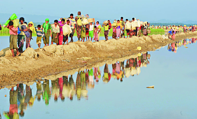 নো ম্যান্স ল্যান্ডে আটকে পড়া রোহিঙ্গারা বালুখালী ক্যাম্পের দিকে যাচ্ছে।
