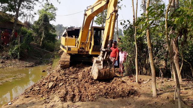 রাস্তাটি উঁচু করে পাকা করার দাবি গ্রামবাসীর। কিন্তু তা হয়নি। এ অবস্থায় গ্রামবাসী চাঁদা তুলে খননযন্ত্র (এক্সকাভেটর) ভাড়া করে এনে মাটি কেটে রাস্তাটি উঁচু করার কাজ শুরু করে দিয়েছেন। প্রায় দুই কিলোমিটার এলাকা উঁচু করাও হয়ে গেছে।