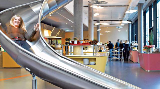 নিজেকে ‘টারজান’ ভাবতে চাইলে জুরিখ অফিসে পাবেন জাঙ্গল লাউঞ্জ। সেখানে ১০০ প্রজাতির গাছের মধ্যে বসে কাজ করা যায়। জঙ্গল থেকে দূরে যেতে চাইলে বিশাল আকারের কৃত্রিম ডিমের ভেতরেও কাজ করা যাবে। জুগলাররা ভবনের একতলা থেকে অন্য তলায় যান স্লাইডে করে, সিঁড়ি বা লিফটে না।