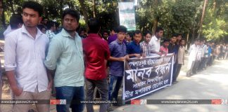 জাবিতে অবাঞ্ছিতদের পক্ষে ছাত্রলীগের একাংশের মানববন্ধন
