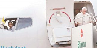 আকাশপথে পোপকে নিয়ে